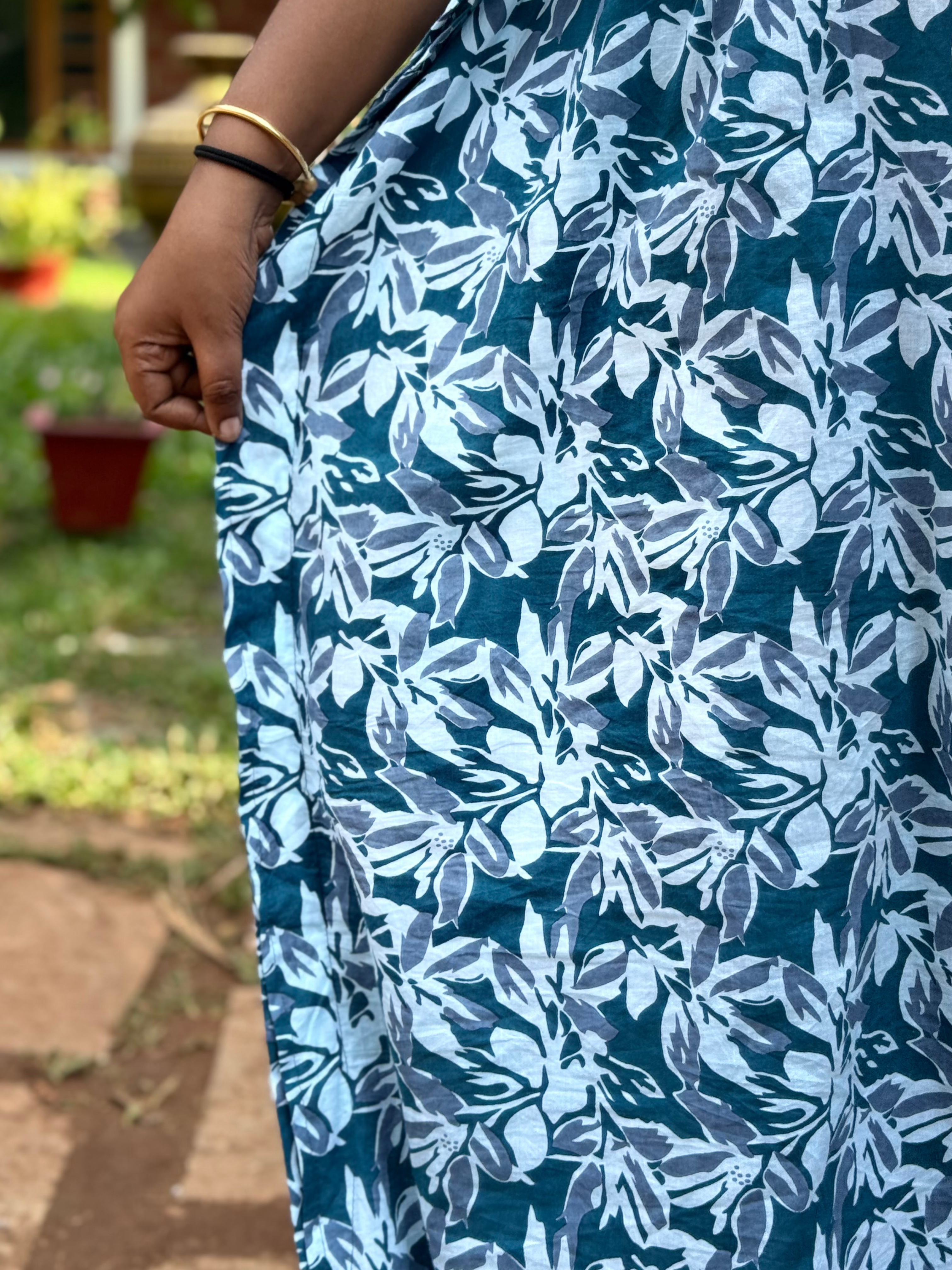 Discover relaxed elegance with this free-size kaftan dress, crafted from pure cotton. Perfect for everyday comfort and effortless style, it features breathable fabric and a graceful silhouette.